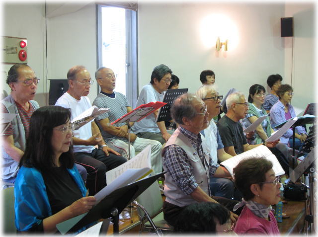 1年経るごとに団員の年齢も増し、なかなか合宿がしんどくなってきています。 また、今年は団員も少し増えやや充実した声量になってきております。 合宿3日目は恒例のステージ順に沿って曲を仕上げてゆく為 1〜4ステージを本番を想定し通しで仕上練習をしました。