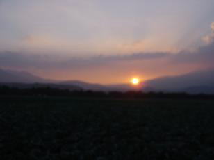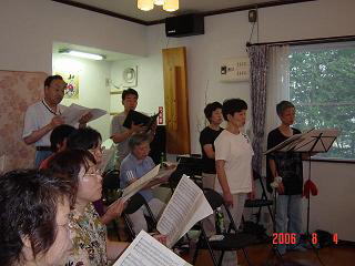朝の新幹線の一部に遅れがあり、ちょっと心配したが、 無事予定通りに出発。 昼前に“ペンションしいな”さんに到着。 ご夫妻の温かな笑顔で迎えられる。 (遅れて到着の方を含め総勢27名ー定演フルメンバー!) 冷たいうどんを美味しく戴く ほとんど休む間もなく、1時より練習開始。 夏日になった東京近辺と同じように、嬬恋も予想外に暑いが、 ホールが少しでも涼しくなるようにと電気を消して頑張る。 いつものことながら、K指揮者が一番暑そうでお気の毒。 ミサ全曲を通す。 春合宿より少しは歌えるようになってはいたが、 K兄さんに作って頂いた、自己点検表に △がまだ大分残ってしまうことを発見。 何しろ長い曲があり、疲労困憊してしまう。 合宿は3度目だが 半日でこんなに疲れたのは初めてのような気が・・・。 私だけ? 5時半になり、 栄養たっぷりの夕食でやっとエネルギーを補給し、 7時からの練習に備える。 食後の散歩で、キャベツ畑の向こうに沈む見事な夕日に 見とれつつ、みんなで写真をパチパチ。 夜の部、 まず「みそしる」では何度も音をとりなおし、 次の「椰子の実」では、 日本語としての表現に特に注意を払う練習。 日本語もなかなか難しい。 9時からのミーティングで、やっとビールとお菓子にありついたが メインはやはり歌。 なぜか、明日予定の「鳥の歌」まで歌い、 練習の続きのような雰囲気も若干あり。 11時、長ーい合宿初日がやっと終わった。 お休みなさい。 (アルト Y. Y. 姉) |